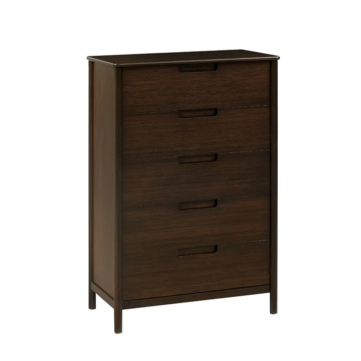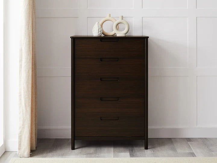 The Weston Collection combines mid-century modern elegance with the natural beauty of bamboo, offering a design that lets the bamboo grain stand out in a refined and simple way. Its versatile style, featuring curved corners, round legs, and recessed pulls, creates a light and inviting feel, making it a seamless addition to any bedroom.